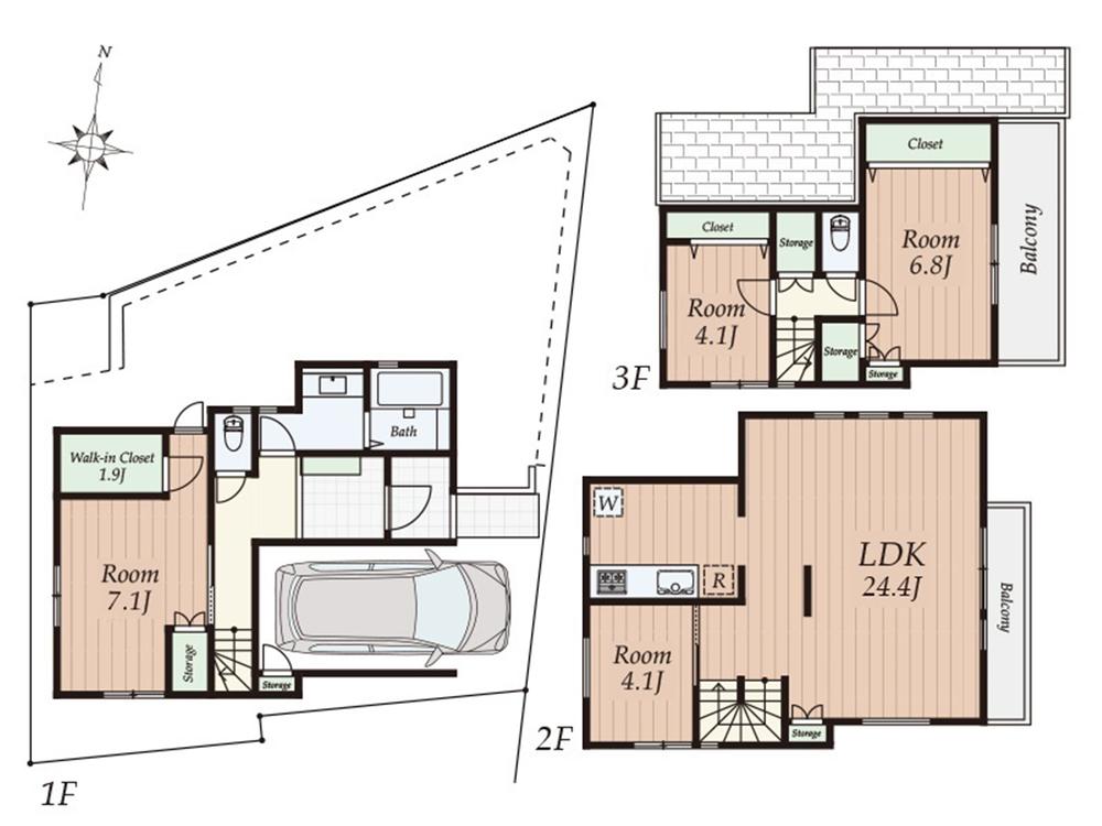 ■南向き 3LDK+パントリー ■建物97m2。LDK 約24帖