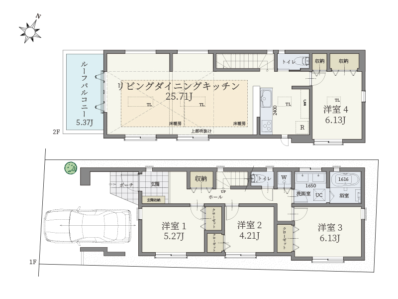 | 間取内容 | 2LDK+2S、ルーフバルコニー |